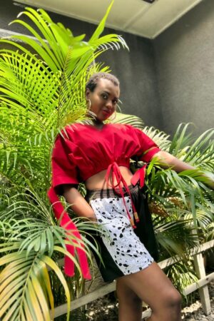 2-piece Cropped Top/Shirt Red with White Lace.