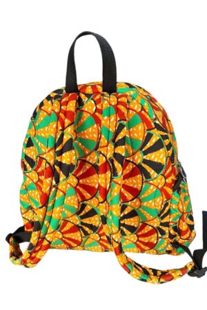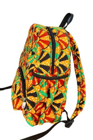 Multipurpose ankara backpack with side pocket extensions paired with a pouch bag.