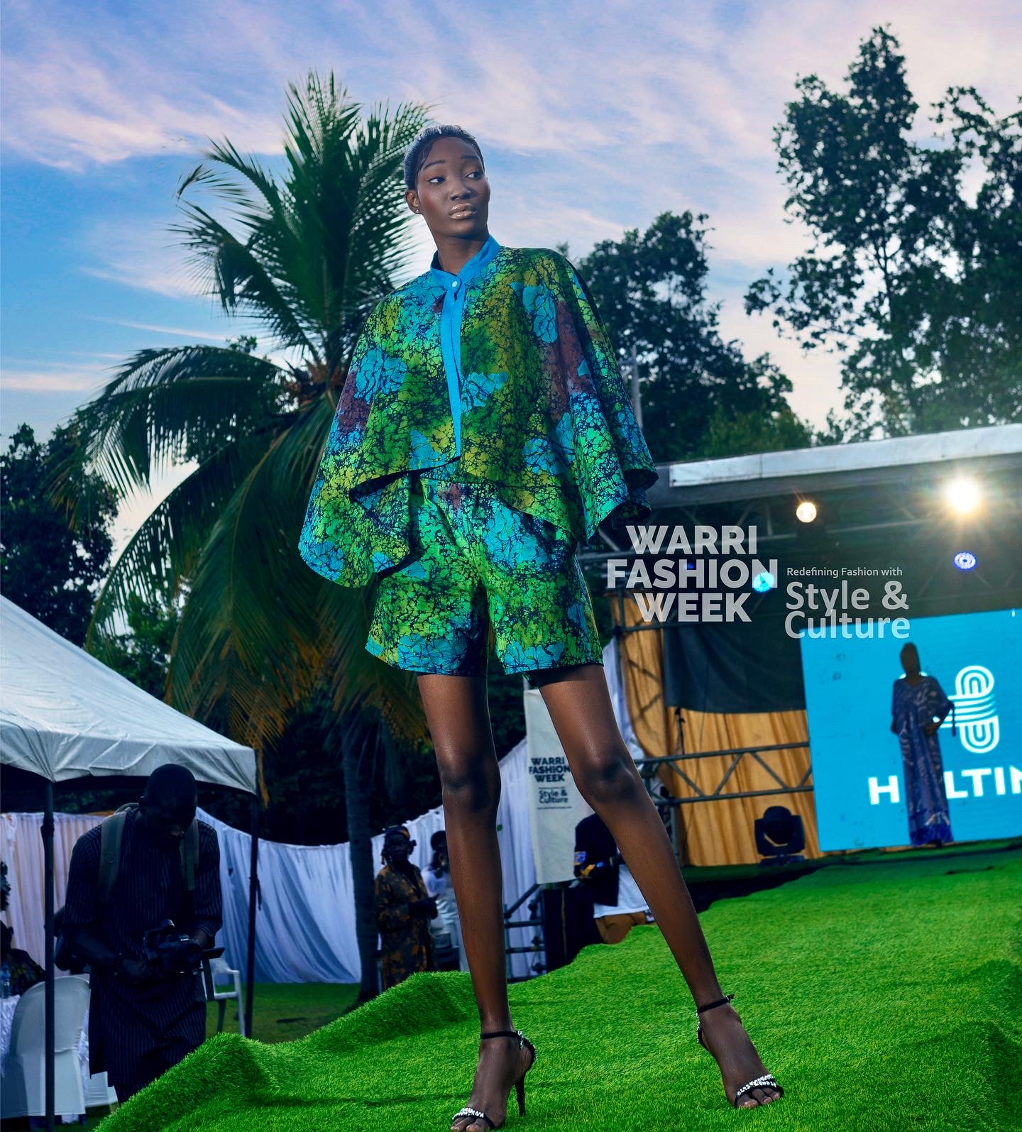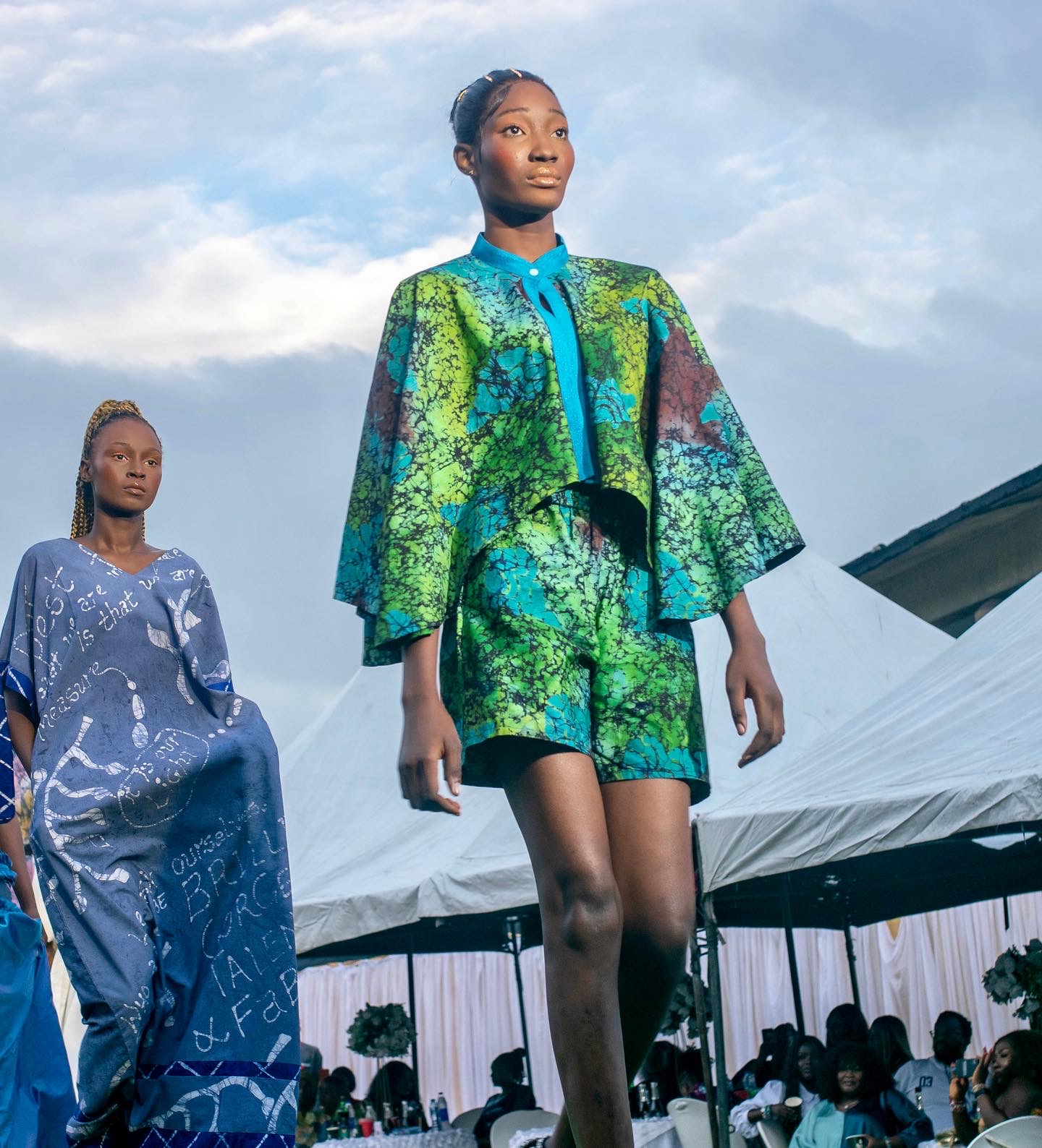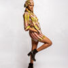 Hand-printed cape top with matching shorts and asooke neckline details.